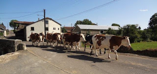 Daarachter een ploegleider met gevoel voor humor ( C'est comme le Tour de France, nést-ce pas ? deed ik mijn best. Zijn gezicht met daarin de geschiedenis van Lavigny gekerfd vertoonde een brede smile. "Oui, oui, oui, klonk het bevestigend, terwijl hij aan zijn oortje friemelde ), niet in een flitsende auto, maar gewoon: te voet.